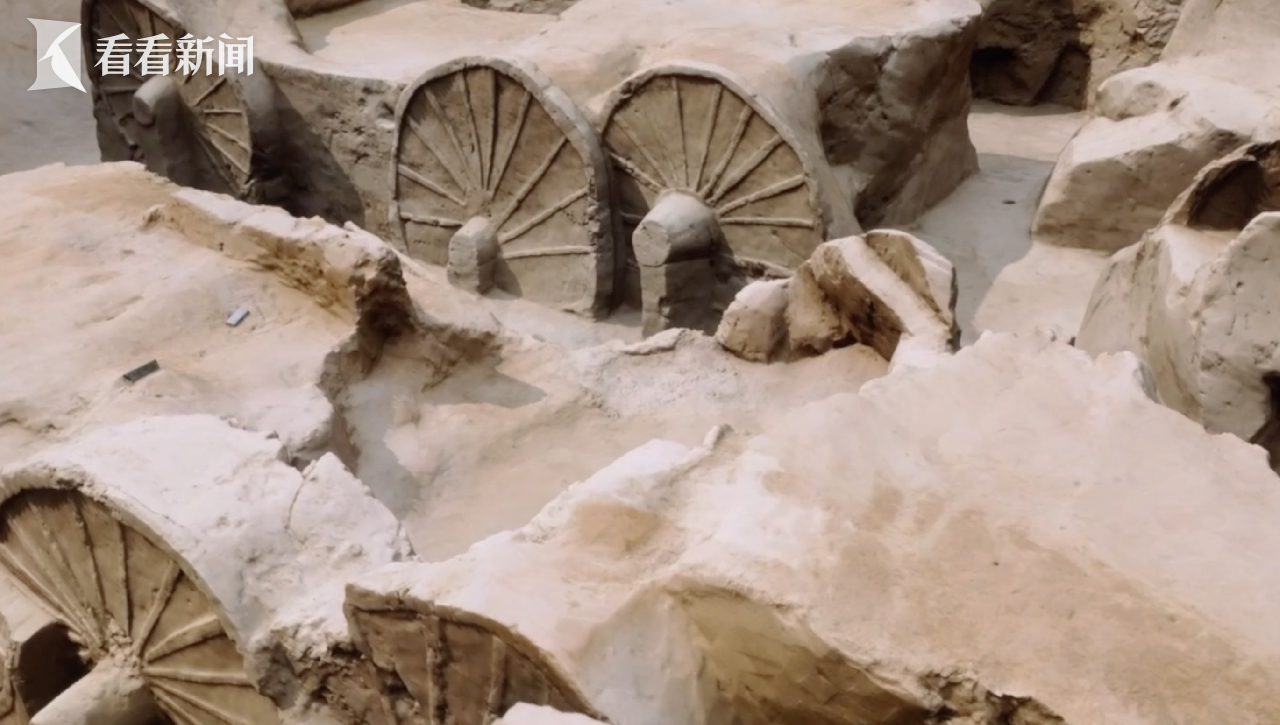 11座“甲”字形大墓,开口面积和土方量,堪比安阳殷墟商王陵,出土了国内年代最早的双辕车实物,将我国双辕车的出现时间上推了约1000年。
