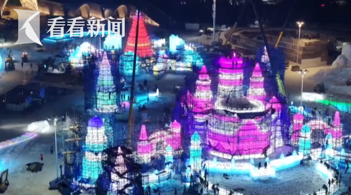 哈尔滨冰雪大世界迎来关键节点,园区核心主塔最后一块冰近日完成吊装落成,标志着哈尔滨冰雪大世界的建设工作取得阶段性胜利,进入开园倒计时,即将以璀璨姿态迎接海内外游客。