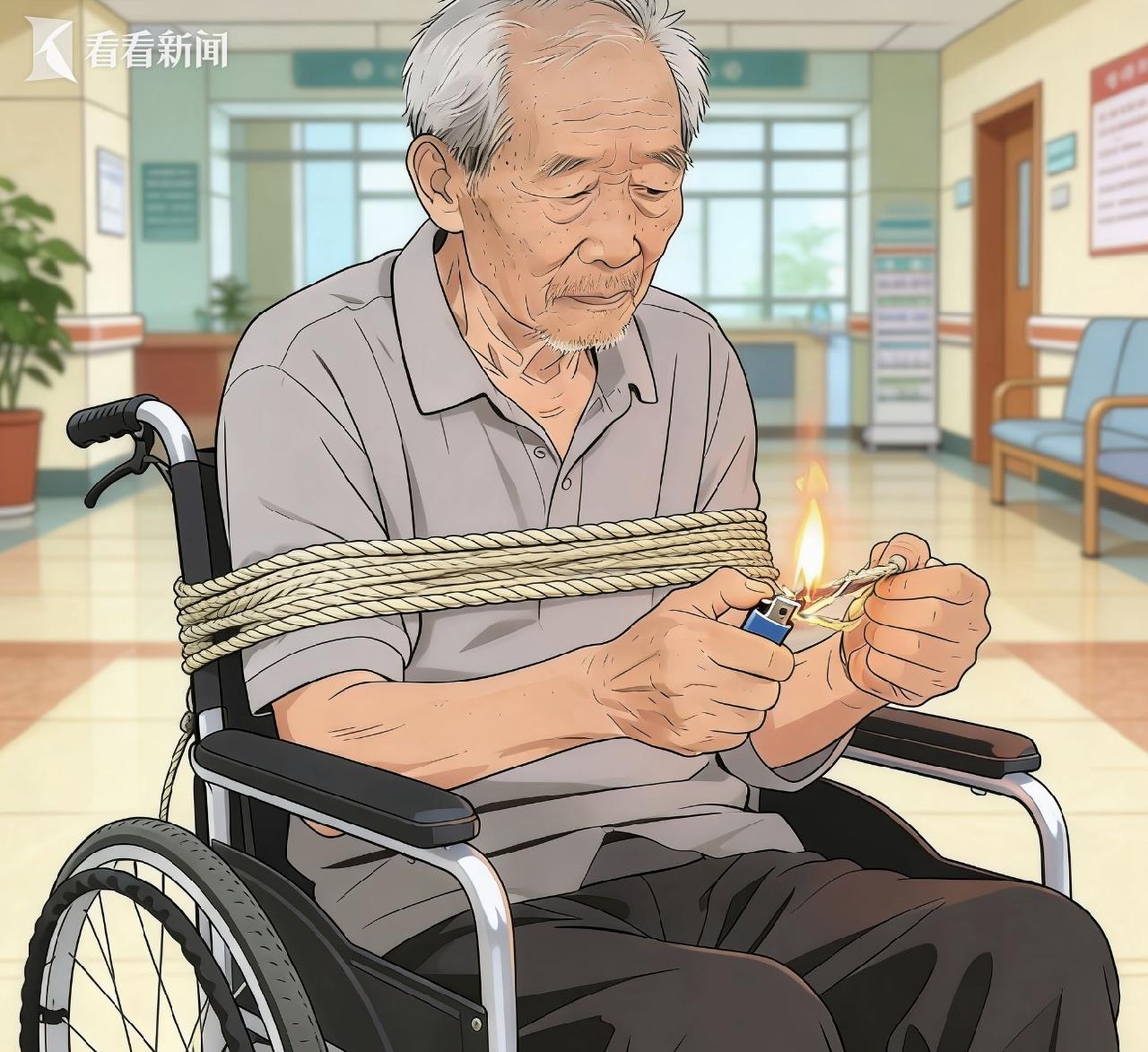 上海一家敬老院里,60岁的老刘被尼龙绳绑在轮椅上,凌晨独自从6楼溜到一楼大厅,掏出打火机点燃绳子。没人能想到,这个举动,最终将他自己吞噬。