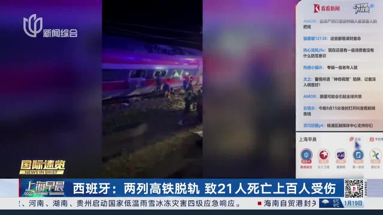 西班牙:两列高铁脱轨 致21人死亡上百人受伤