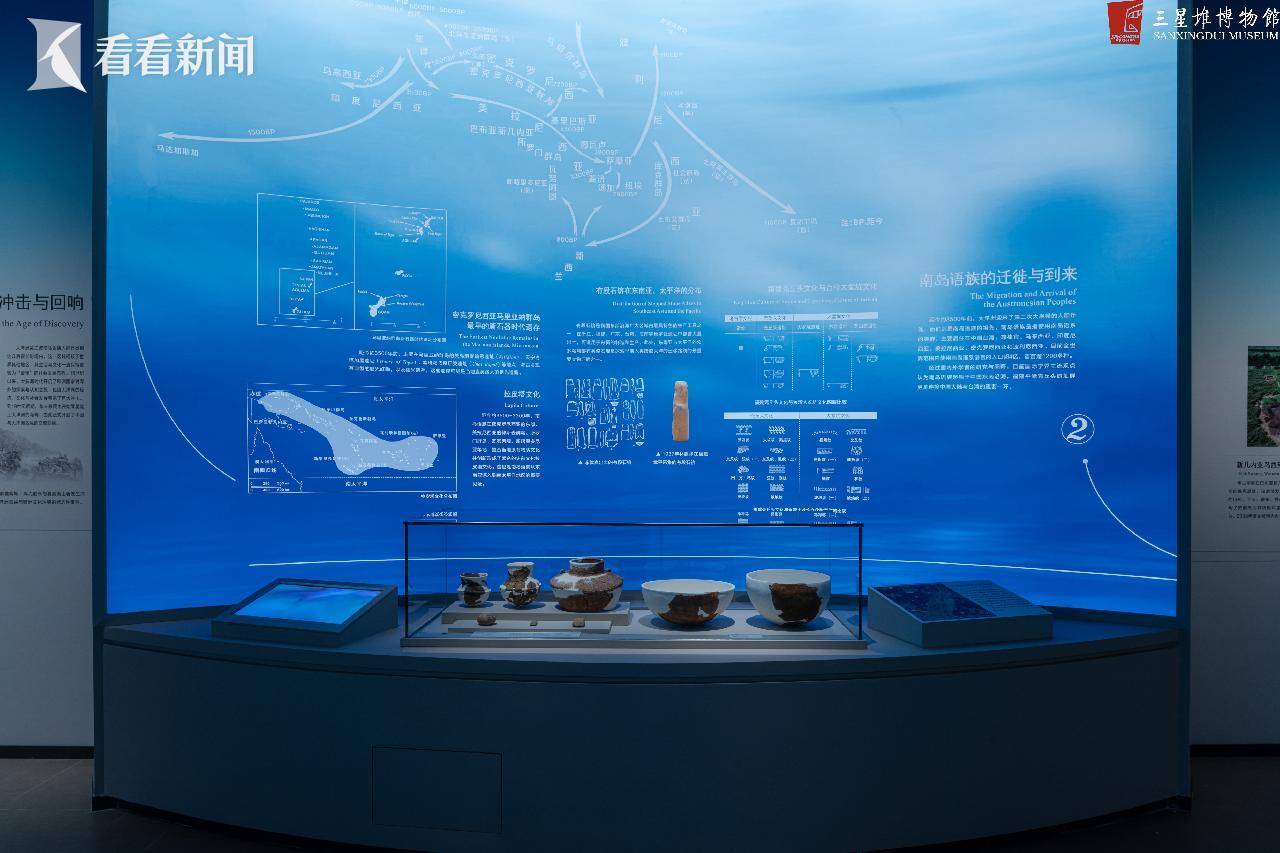 2月12日“碧海浮槎——法国国家凯布朗利博物馆藏大洋洲艺术珍品展” 在三星堆博物馆启幕,本场展览以大洋洲人群为核心,沿水域、空间、时间、人类自我表达四大维度,设“驶向深蓝”“山海烟火”“天海之交”“礁屿凝光”四大篇章,层层解码太平洋群岛文明脉络。其中,“驶向深蓝”回溯先民迁徙历程,直观呈现南岛语族起源于中国东南沿海的历史。