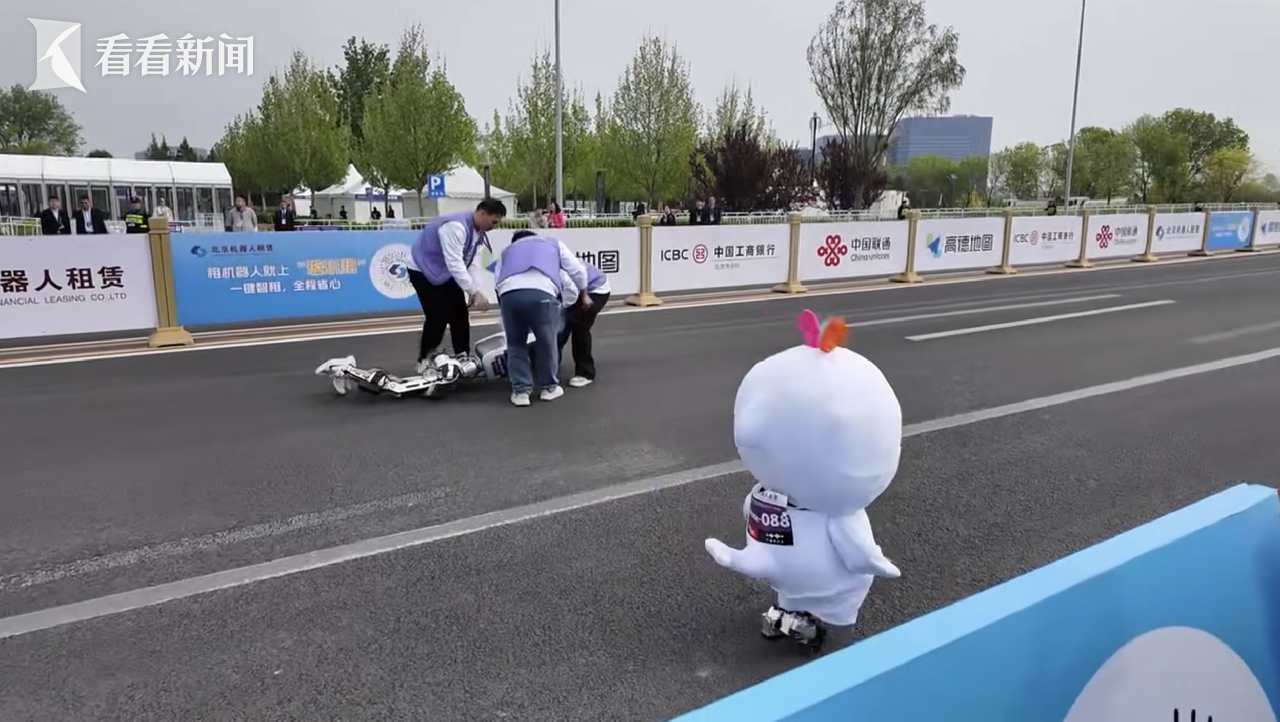 “大湾鸡”见人类来抢救就继续跑开了,“小铁骑队”选手则被抬走靠边休整,重新站起来后也继续追赶,一边的人类纷纷为他们加油!