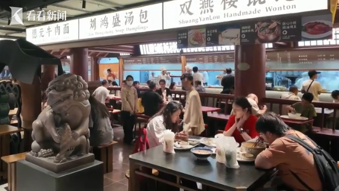 食客:环境比原来好很多,然后吃的东西也比较上海化了,像锅贴啊生煎,还有那个包括外面有红房子西点,都是原来这里没有的,一站式打卡又多了一个好去处,至少我以后每次都会过来。