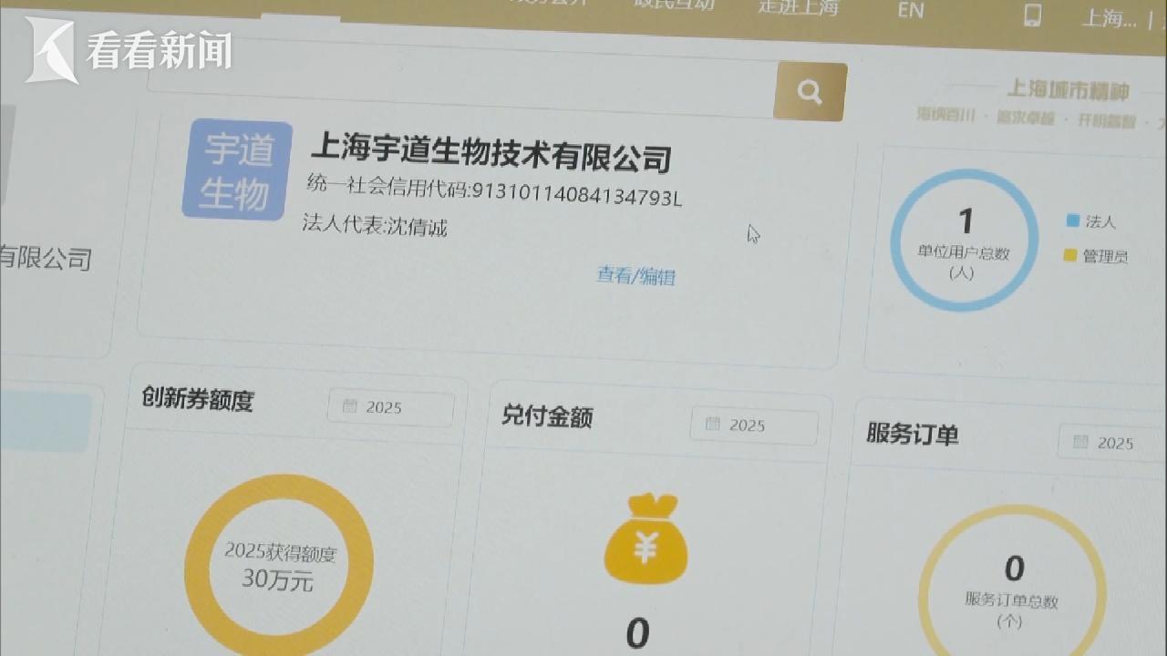 位于张江的一家AI制药企业近日在未提交申请的情况下,自动获得了额度为30万元的科技创新券。上海宇道生物技术有限公司总经理助理沈书涵表示:“这对我们来说是极大的支持。后续我们将把补贴用于早期研发,包括化学合成、毒理药理以及动物模型等服务。”