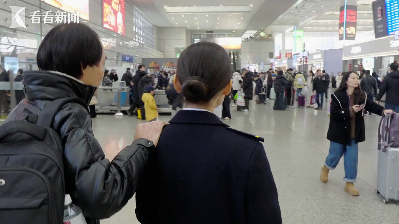王骏椰带着小刘,一路穿过人流、通过闸机,送上列车,还约定,等他回上海时,还会在车站里接他:“提前祝你新年快乐!”小刘很感激:“以前这个车来了没来,我们心里都没数。那个显示屏,我们又看不清。以后出去的话,没有很大的顾虑,会很放心。”