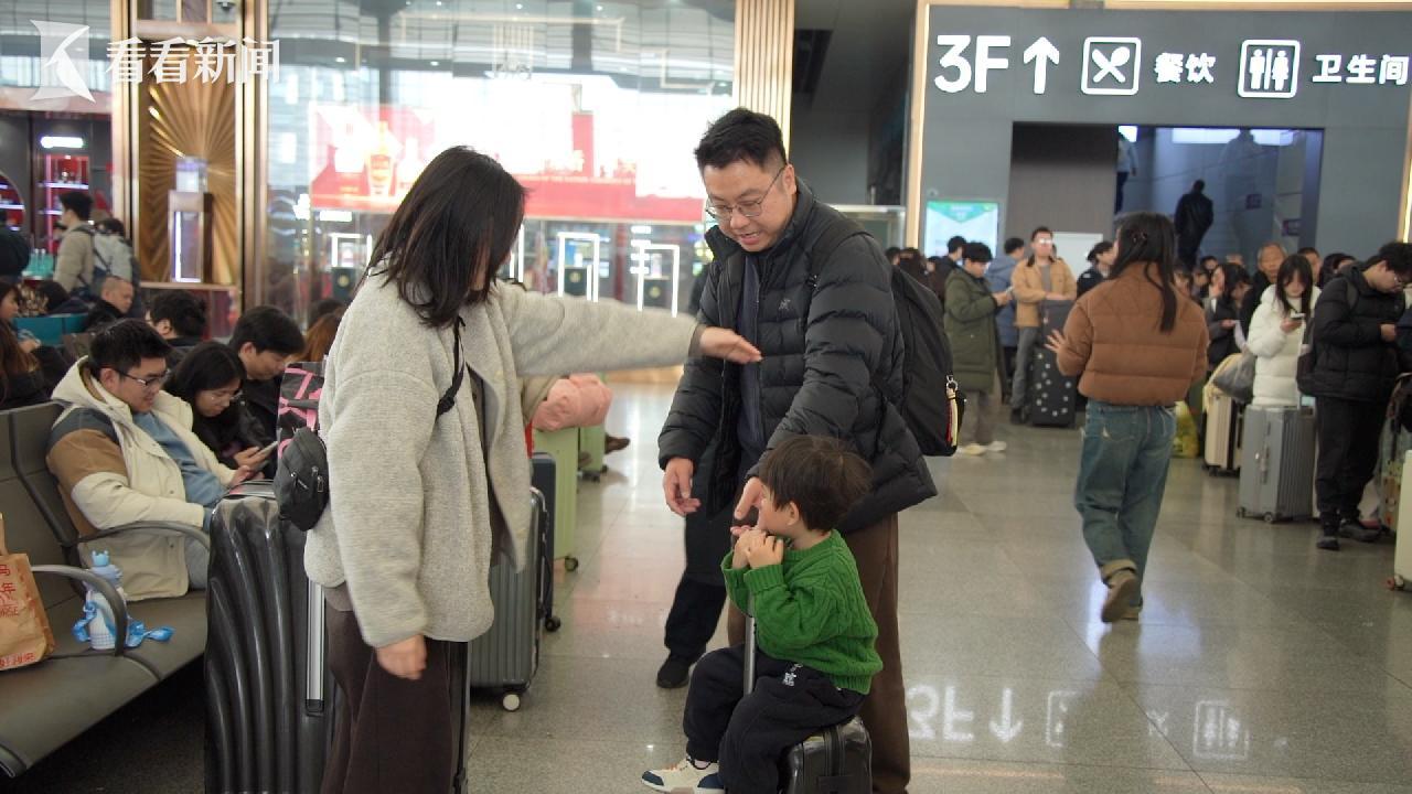 春节假期首日,在成都东站候车大厅内,山东旅客付笑然正准备和家人返回菏泽老家。10年前,付笑然大学毕业后,就和丈夫一同留在了这座求学的城市。作为北方人来到成都生活,两人逐渐适应了这边湿润的气候和麻辣的饮食,后来两个宝宝相继出生,这个四口小家也渐渐把他乡当做了自己新的故乡。