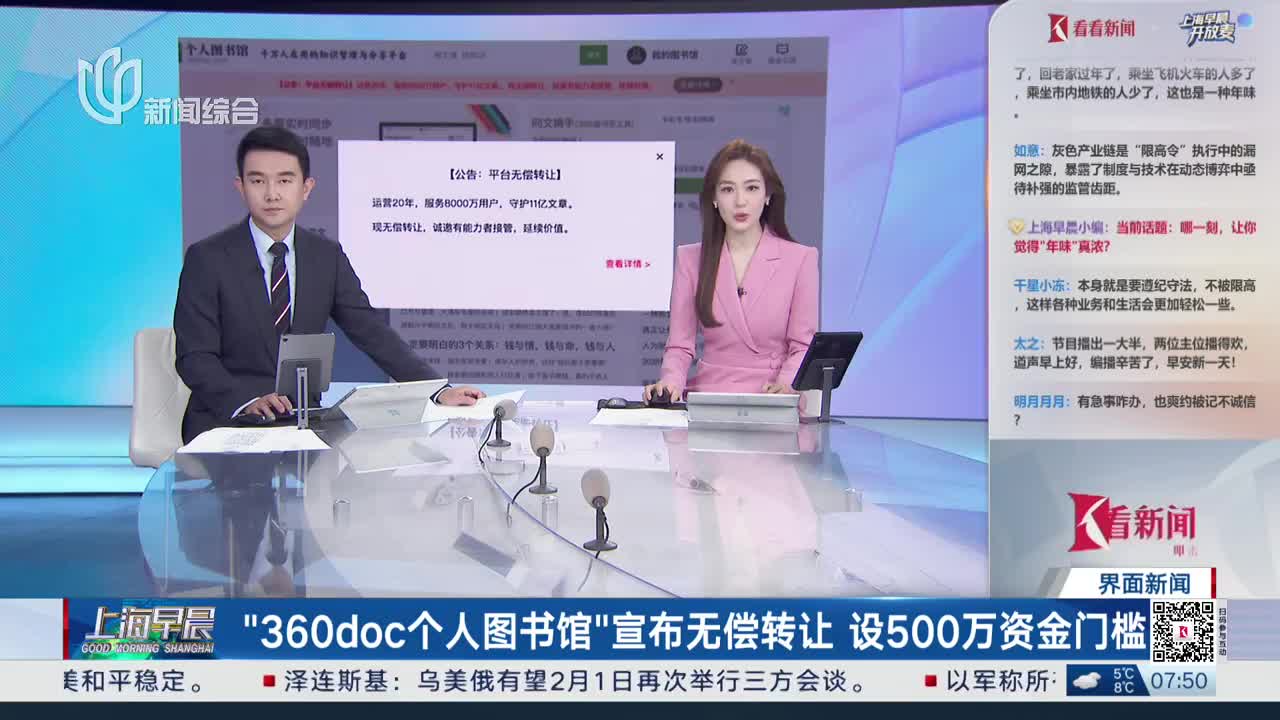 “360doc个人图书馆”宣布无偿转让 设500万资金门槛