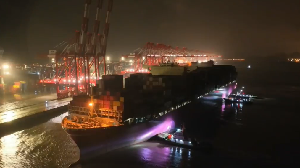 10月30日晚上11点半左右,船舶停靠洋山港四期码头,两个集装箱被迅速卸下并转运至专用堆场,里面分别装有在本届进博会上全球首发的智能清洁机器人主机和配件,最终这批因海运延误的展品顺利通关入境,迅速送往进博会展馆。