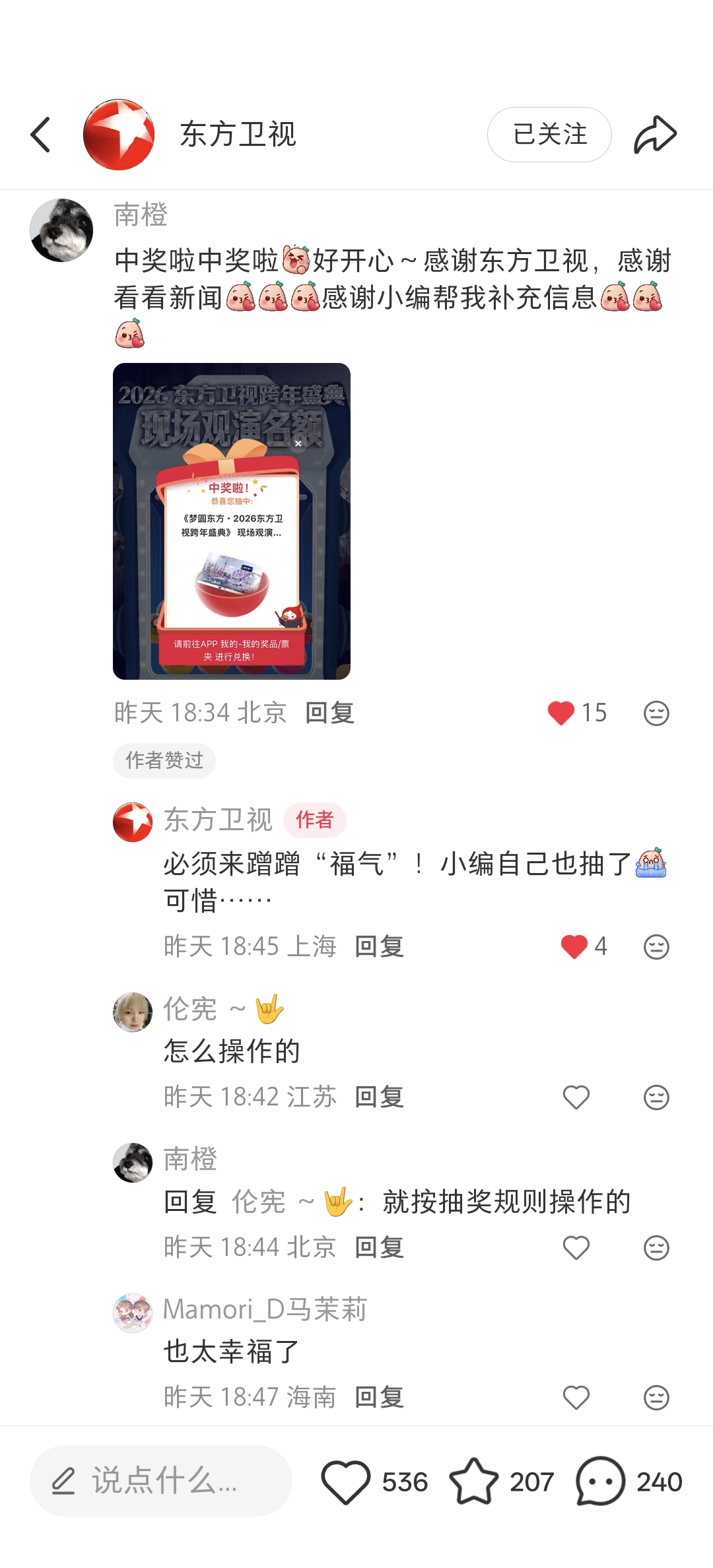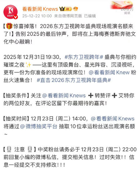 我们在看看新闻APP、微博发起了粉丝福利活动,只要动动手指,就有机会获得跨年盛典现场观演名额,活动一经发布,获得粉丝们的热烈反响,已经有不少幸运的朋友获得了现场观演的机会!