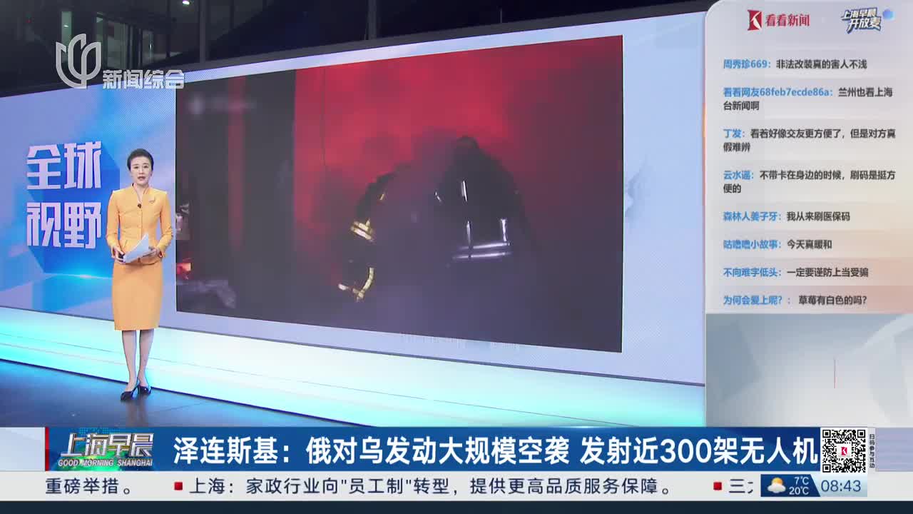 泽连斯基:俄对乌发动大规模空袭 发射近300架无人机