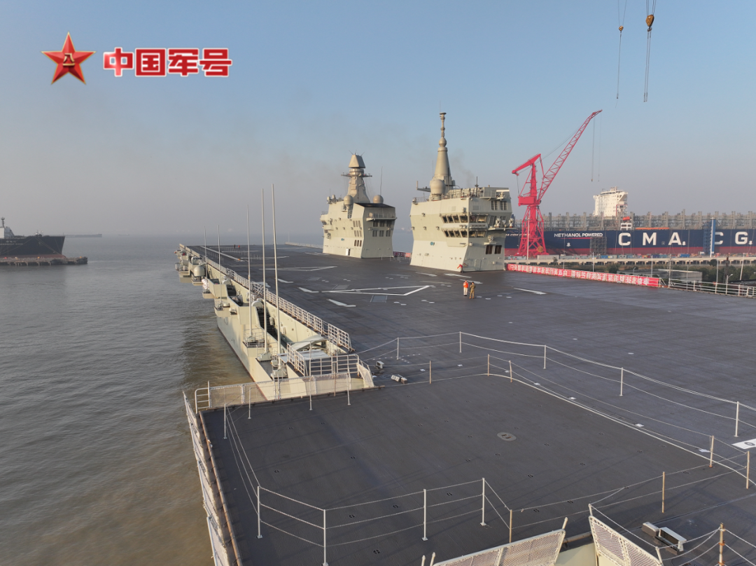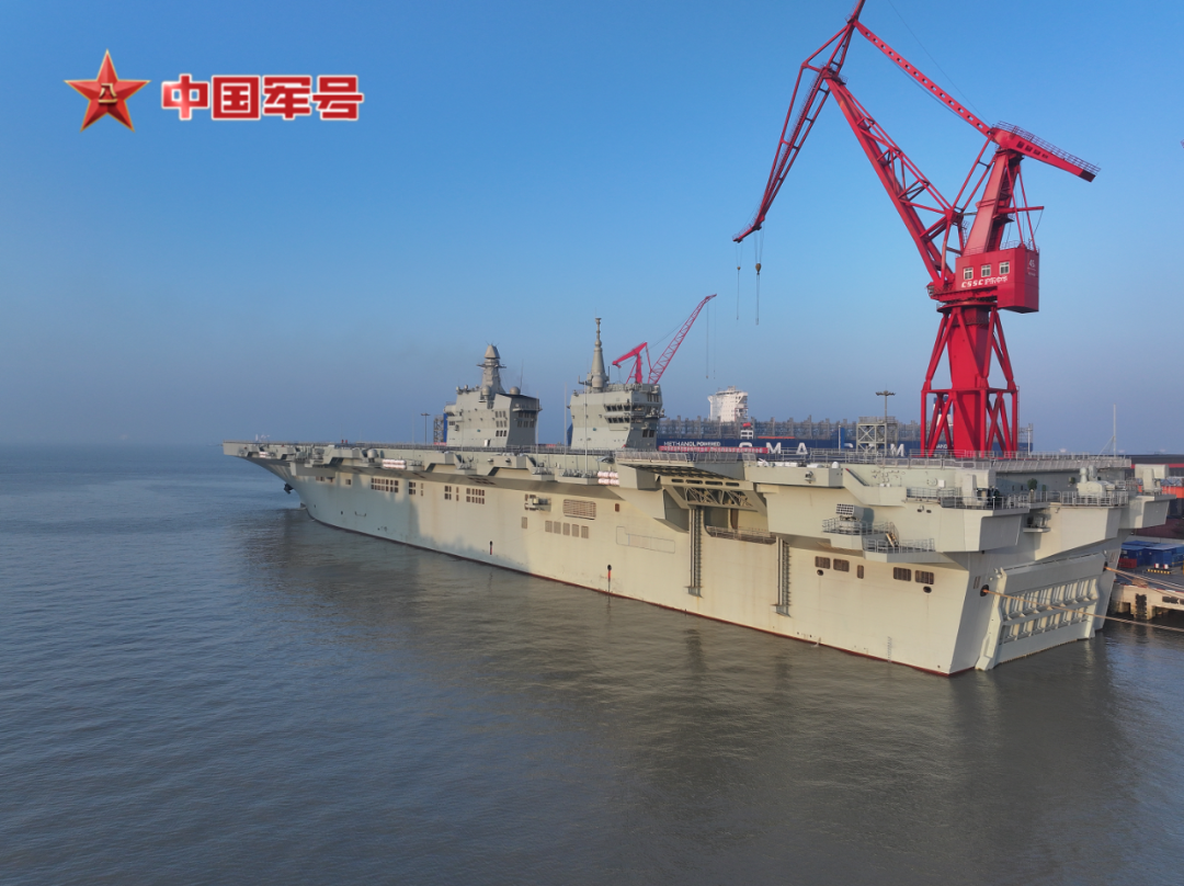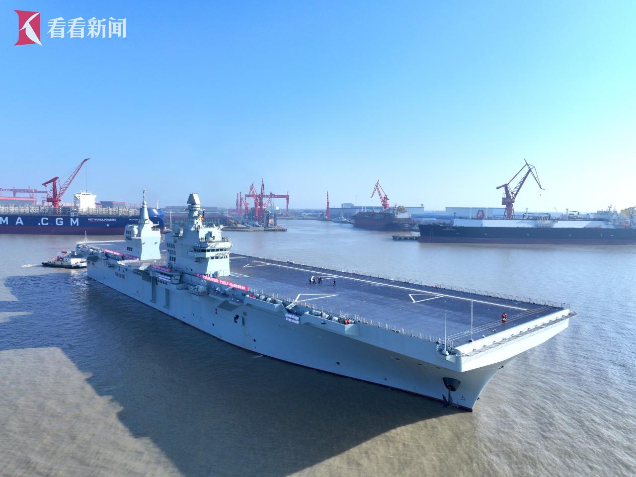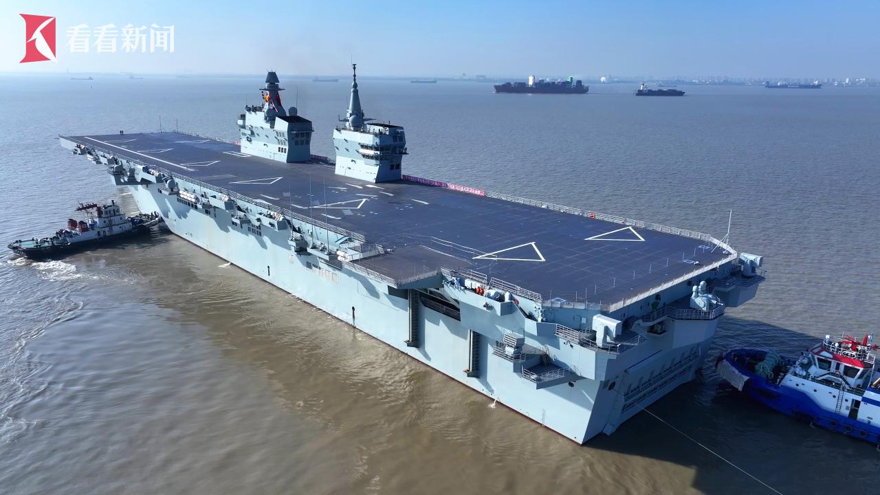 14日9时许,我国076两栖攻击舰首舰四川舰从上海沪东中华造船厂码头解缆启航,赴相关海域开展首次航行试验任务。
