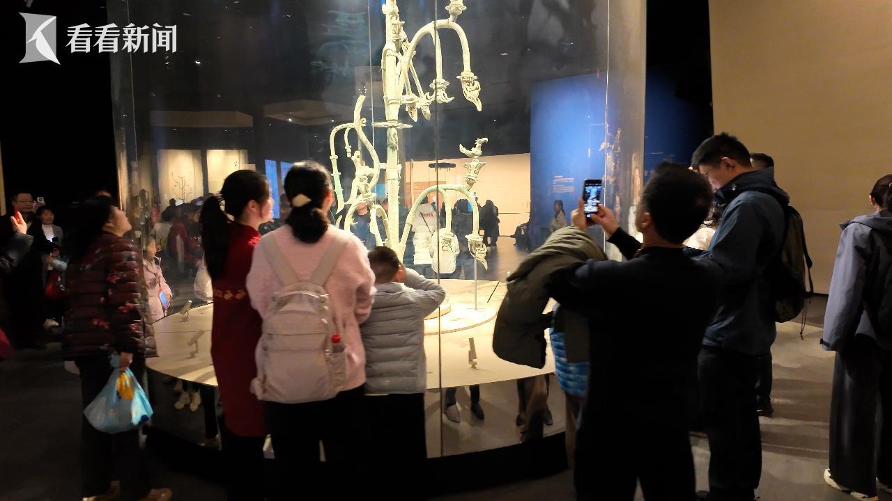 而在三星堆博物馆新馆展厅内,青铜大立人、青铜神树、黄金面具等国宝重器前,游客络绎不绝,古蜀圣地迎来春节参观热潮。大家驻足凝望、仔细观赏,震撼于三千多年古蜀文明的磅礴气势与精湛工艺。