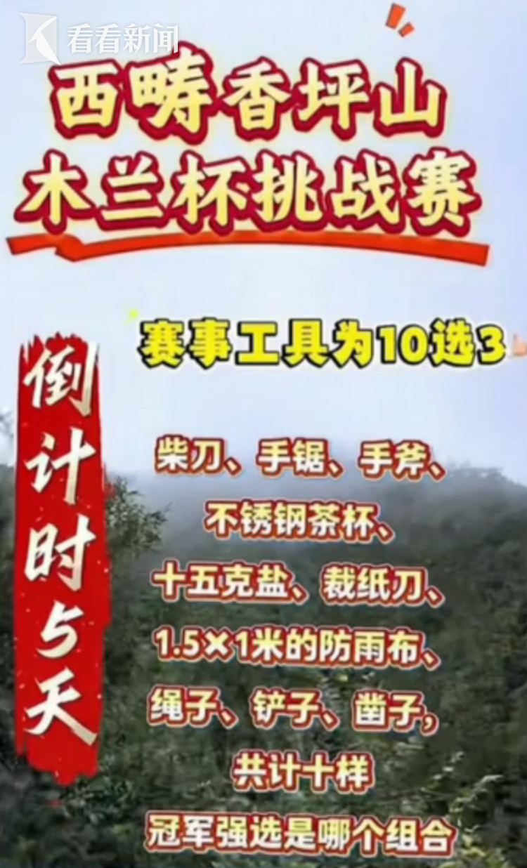 云南木兰杯荒野求生技能大赛,因为天气原因,容易引发安全事故,在开赛前三天被紧急叫停,选手们讨要白跑一趟的补偿。