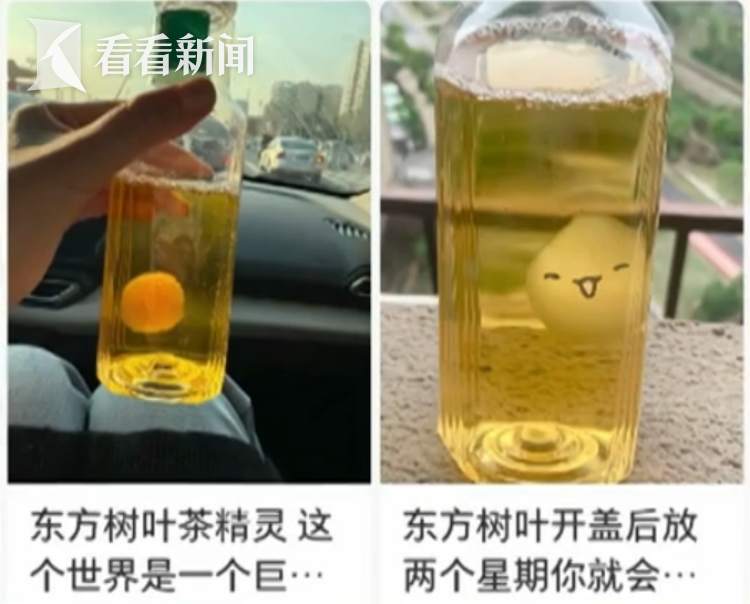 据发帖者表述,这些“茶菌”是开瓶后数天后未饮用内部自然形成的,甚至有人分享“培育攻略”:将开瓶饮用后的东方树叶丢在车里,不用晒太阳,“茶菌”自己就会冒出来。