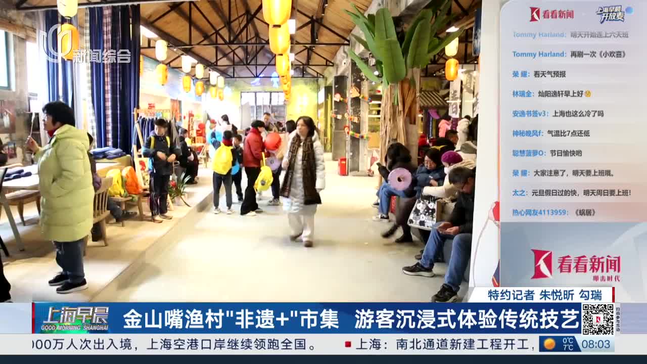 金山嘴渔村“非遗+”市集 游客沉浸式体验传统技艺