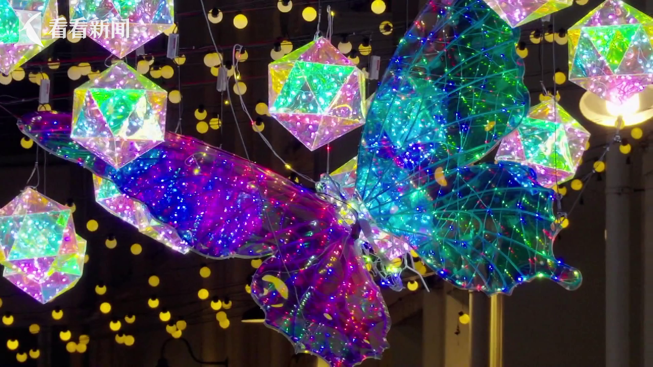 而宝山罗店镇的彩灯,不仅好看,还很有故事。空中展翅的“蝴蝶灯”十分灵动,它们是罗店传承了数百年的非遗瑰宝,也是罗店彩灯第三代传承人严平的创新之作。严平说:“今年罗店灯会有一个‘破茧成蝶’的主题,我就按照这个思路设计了蝴蝶花灯。传统与海派风格温柔地融合在一起,希望把罗店彩灯打造成一张文化名片。”