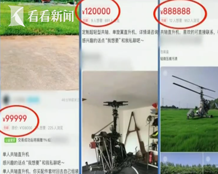 记者进一步在二手交易平台,以直升机旋翼机为关键词进行检索,更是看到不少自制飞机被公开售卖,售价由8万元至数10万元不等。