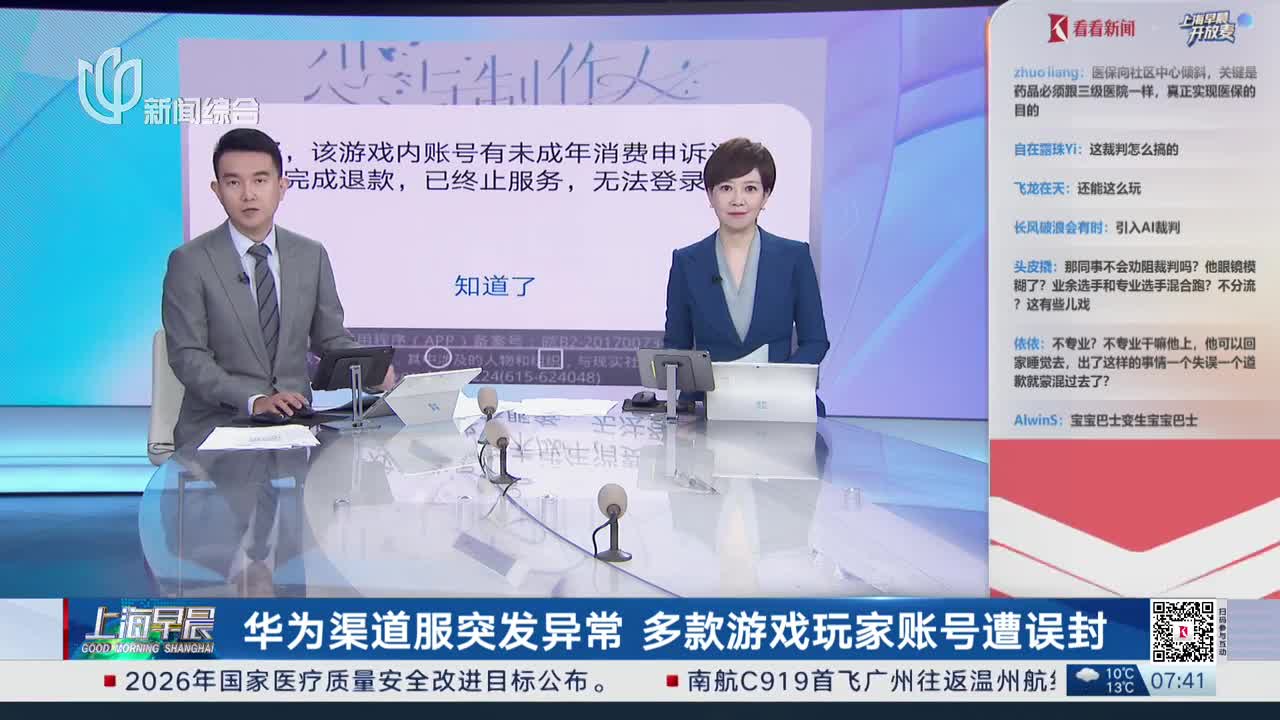 华为渠道服突发异常 多款游戏玩家账号遭误封
