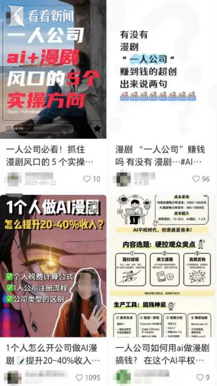 近年来,AI技术的发展让漫剧制作门槛明显降低,一个人借助AI工具,就可以完成绘图、剪辑等制作流程,“一人公司”模式随之兴起。