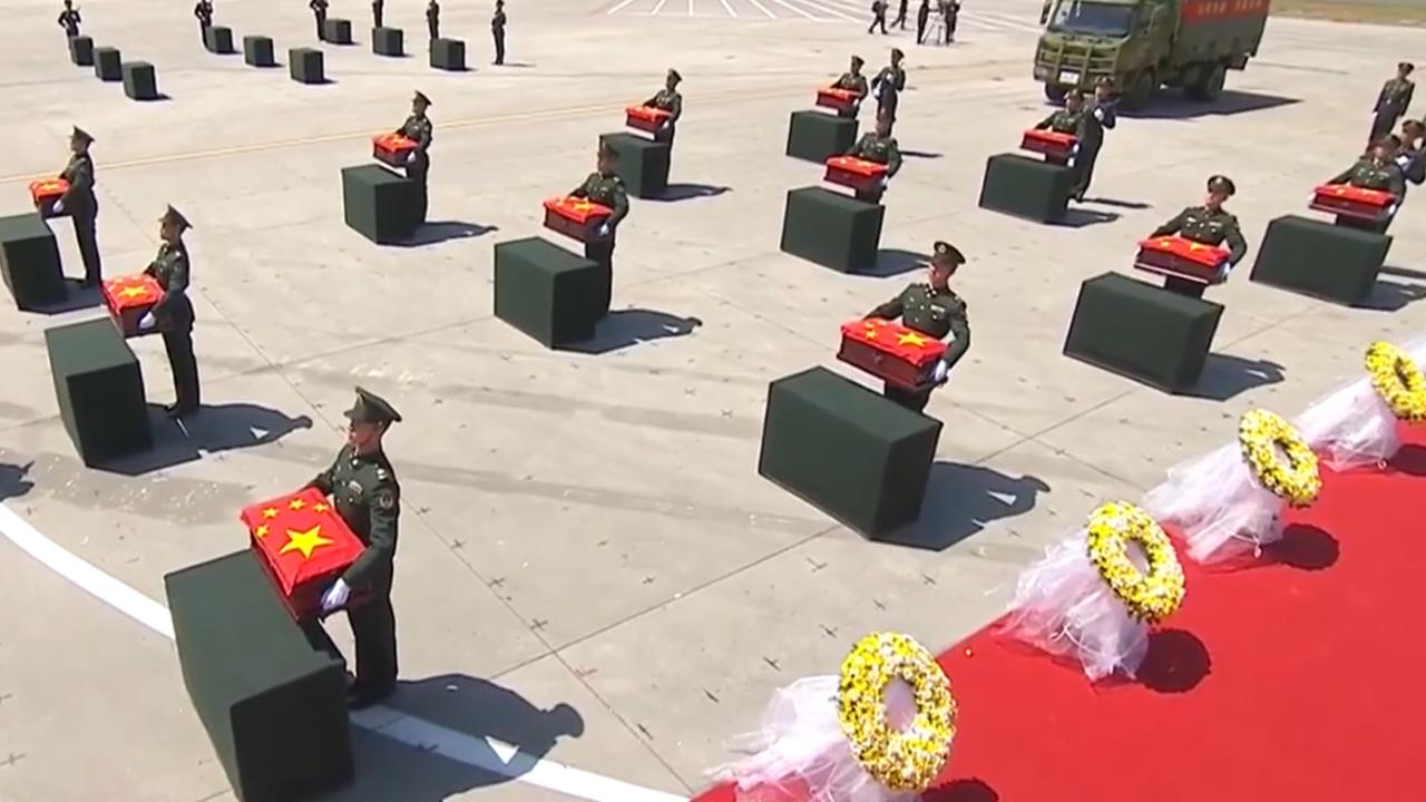 这道“水门礼”,是祖国和人民迎接英雄回家的最崇高礼遇。自2014年以来,中韩已连续成功交接十二批、共1011位志愿军烈士遗骸及相关遗物。去时少年身,归来英雄魂。70多年的漫长等待,烈士英灵终于回到祖国和人民怀抱。