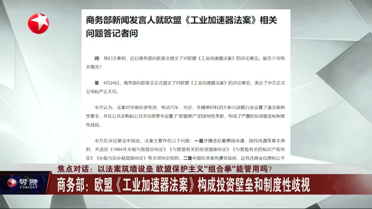欧盟《工业加速器法案》对外商投资新兴战略行业设限 商务部:已向欧委会提交对法案的评论意见