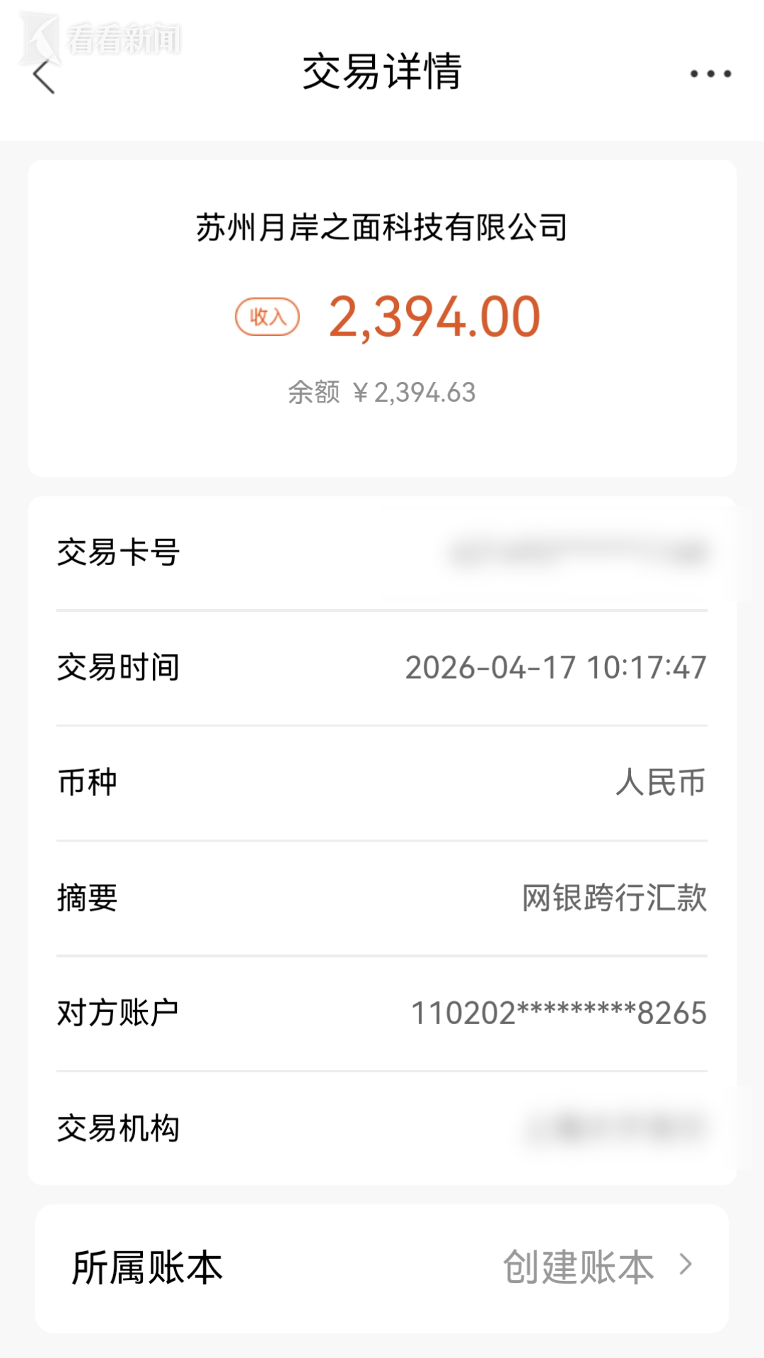 新闻报道后,今天上午,任老伯告诉记者,租哈哈公司客服来电问他要了银行卡号,不到十分钟,苏州一家“月岸之面科技有限公司”把全额退款打到了妻子账户上。