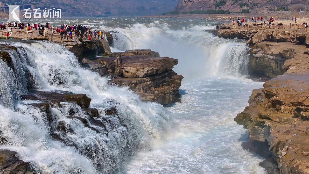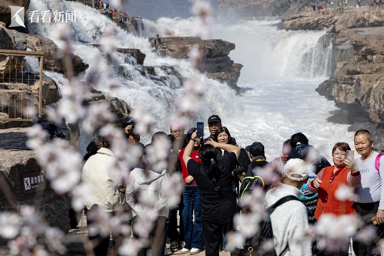 近日,随着气温回暖春意渐浓,黄河上游冰层逐步消融解冻,陕西黄河壶口瀑布迎来一年一度壮美绝伦的桃花汛景观。
