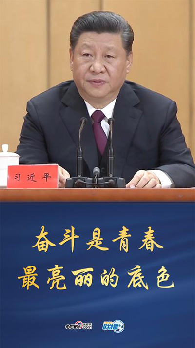 “五四运动以来的100年,是中国青年一代又一代接续奋斗、凯歌前行的100年,是中国青年用青春之我创造青春之中国、青春之民族的100年。”