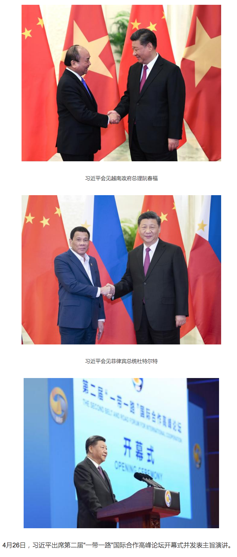 从4月25日开始,习近平的活动一场接一场:同39位各国领导人及国际组织负责人一一会晤。