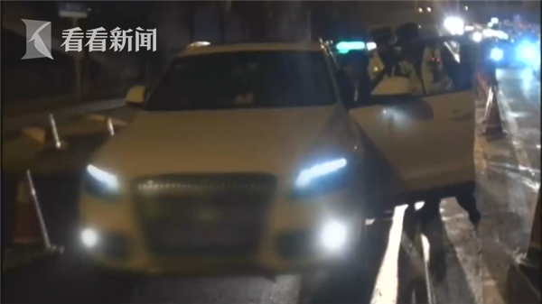 4月9日晚上,武汉市硚口交通大队民警在解放大道航空路口,设岗盘查酒驾,晚上11点50分,一辆白色奥迪车被民警拦下检查。