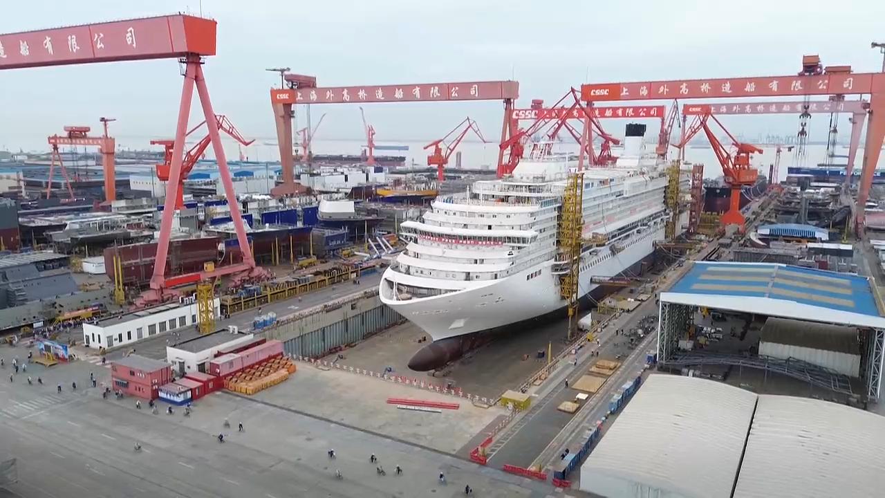 在“更大体量”与“更高标准”的双重挑战下,外高桥造船继续采取“引进消化吸收再创新”的发展路径推动第二艘国产大型邮轮高效建造。当前项目实际进度超前于计划,工程总进度超88%,全船贯通、起浮等关键节点2025年内均已高质量完成,整体建造效率较首制船提升20%。产业链本土化也取得积极进展,大宗材料全面实现国产化配套、阳台工程包、敷料工程包、升降娱乐系统等实现国产替代,中国邮轮产业新版图加快开拓。