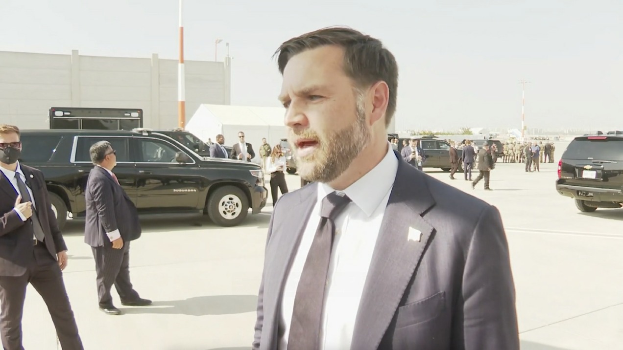 近日正在以色列进行访问,准备离开时,忽闻此讯的美国副总统万斯称其为“极其愚蠢的政治噱头”。