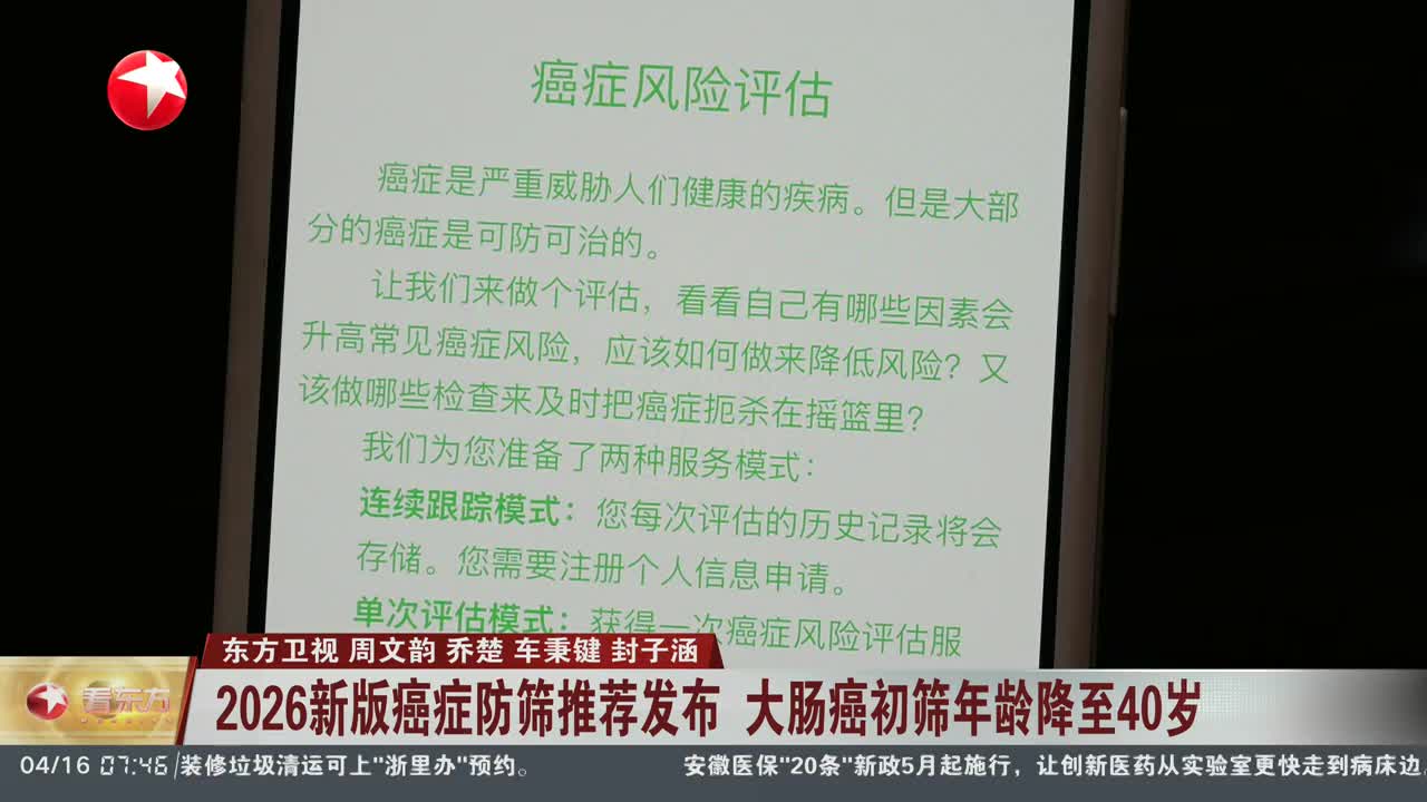 2026新版癌症防筛推荐发布 大肠癌初筛年龄降至40岁