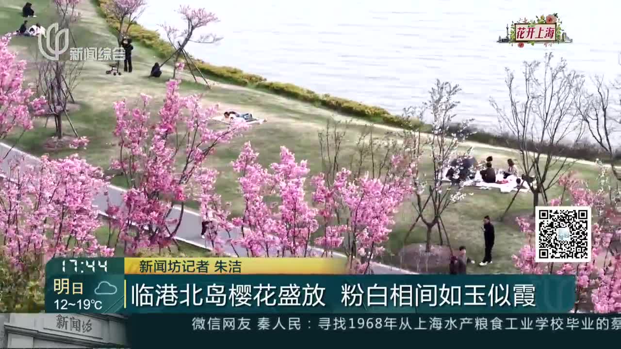 临港北岛樱花盛放 粉白相间如玉似霞