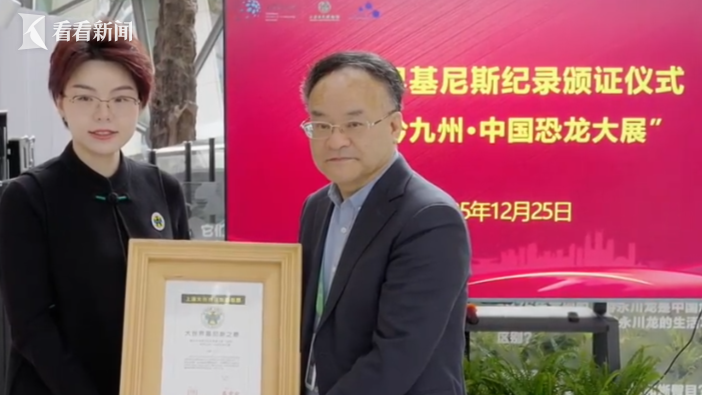 因一次性集中展出42件恐龙模式标本,上海自然博物馆的“龙吟九州·中国恐龙大展”,今天上午被认证为“展出恐龙模式标本数量之最(临展)”,获颁大世界基尼斯(中国之最)纪录证书。此次中国恐龙大展汇集了全国12家博物馆、科研院所的118件代表性恐龙标本和重要模型。被称为“中国第一龙”的许氏禄丰龙,在这次大展上就有两件。展览自今年5月31号对公众开放以来,累计已接待观众近40万人次,目前,该展览已确认延期至明年2月28号。