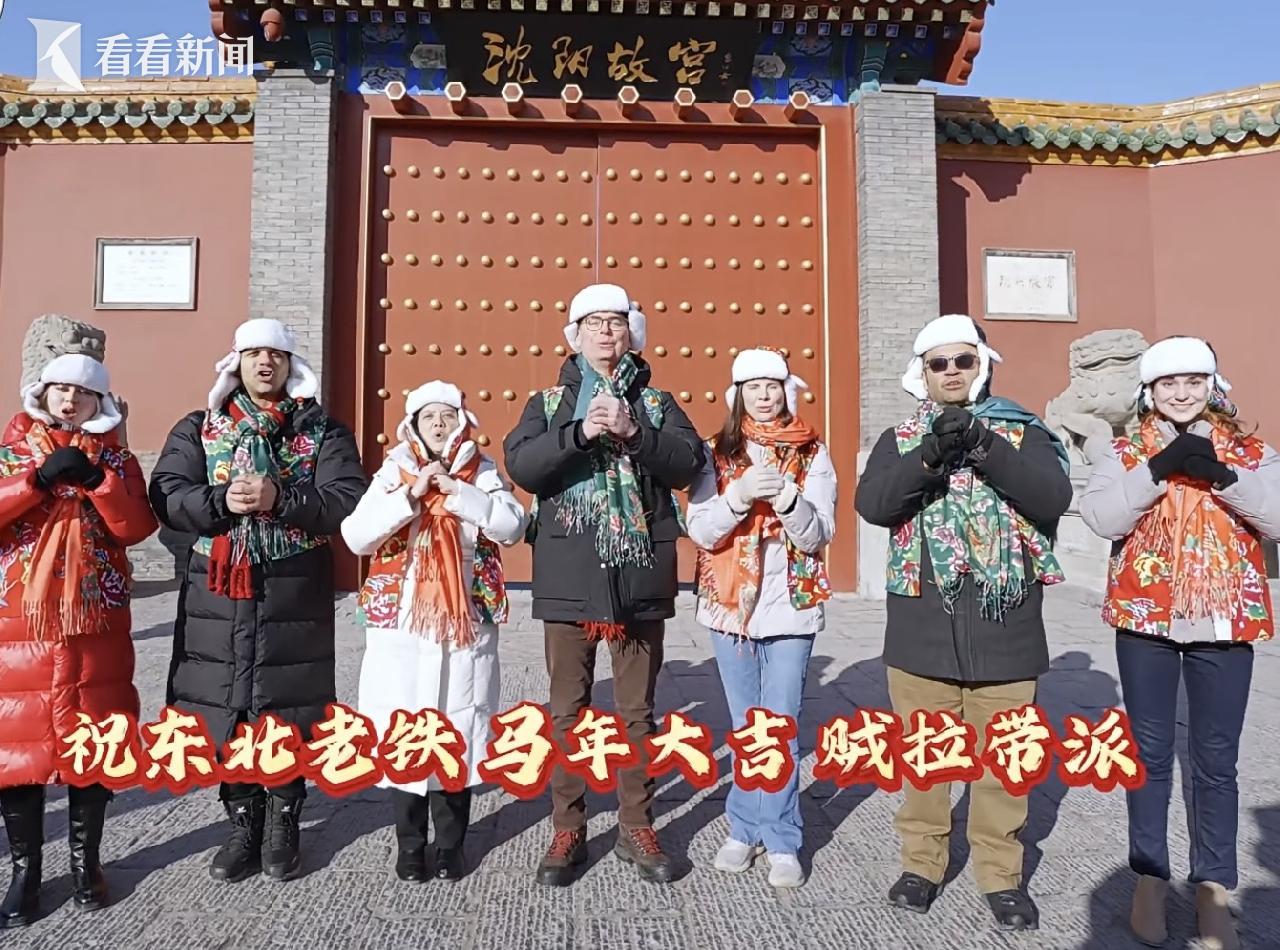 随文章一同发布的两分多钟视频中,这群美国外交官们不仅高唱“黑土地养育着咱的爹娘”“哥们儿相聚必须整二两”“我就在这嘎达土生土长”“贼拉拉的爱你呀我的家乡”等歌词,还穿上东北大花棉袄,在沈阳故宫外吹唢呐、扭秧歌,舞起二人转手绢。