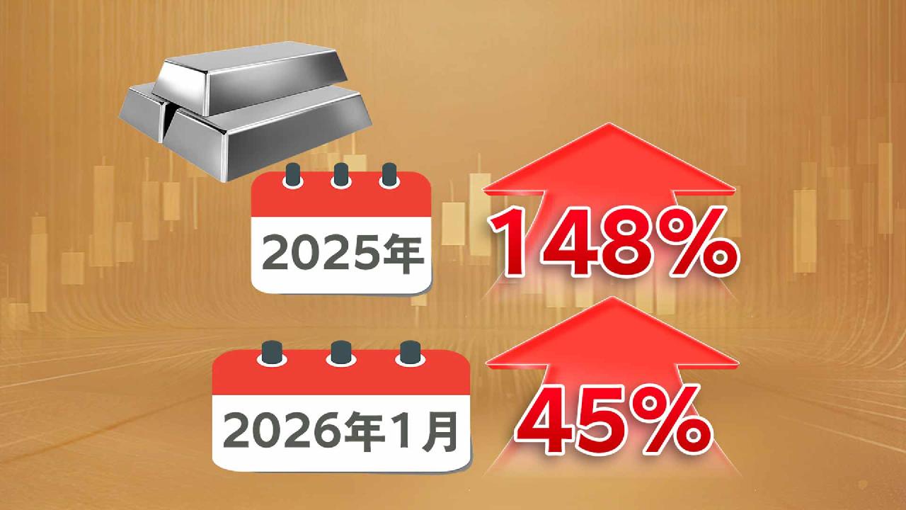 从去年起,银价开启狂飙模式。2025年初,国际银价不足每盎司30美元,到了12月底,突破每盎司80美元,全年涨幅达到了近148%。今年年初至今,再次上涨了45%。