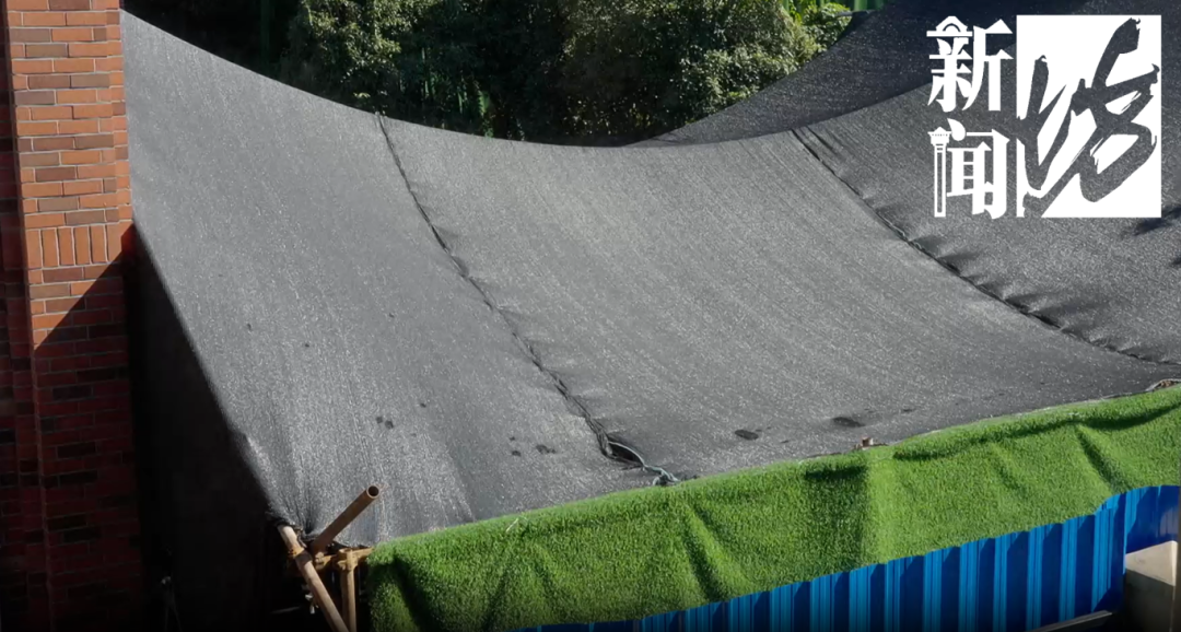 被罩上巨大的黑色网布