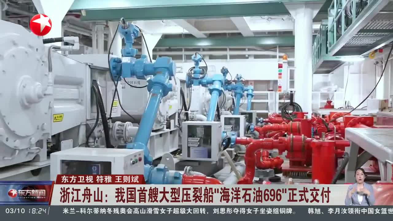浙江舟山:我国首艘大型压裂船“海洋石油696”正式交付