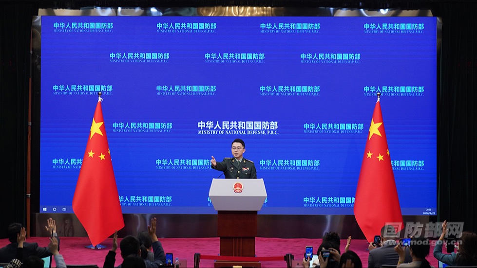 3月26日下午,国防部举行例行记者会,国防部新闻局副局长、国防部新闻发言人蒋斌大校答记者问。