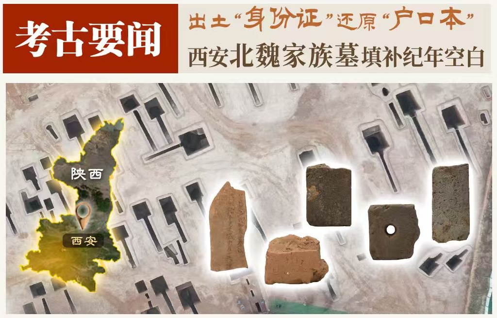 4件砖志、1件瓦志,纪年与姓名清晰。这是墓主人的“身份证”,为断代与确认身份提供了关键证据;多人合葬的形式结合DNA遗传分析,则帮助考古团队还原出墓主人家的“户口本”:绝大多数男性个体彼此存在亲缘关系,少数个体与核心家族存在姻亲关联。西安前锋村北发掘清理出的32座北魏时期墓葬,确认为以杨氏家族血缘为主、姻亲为辅的集中埋葬区,真实反映了北魏地方平民与低级官吏的家族结构、丧葬习俗与社会关系。
