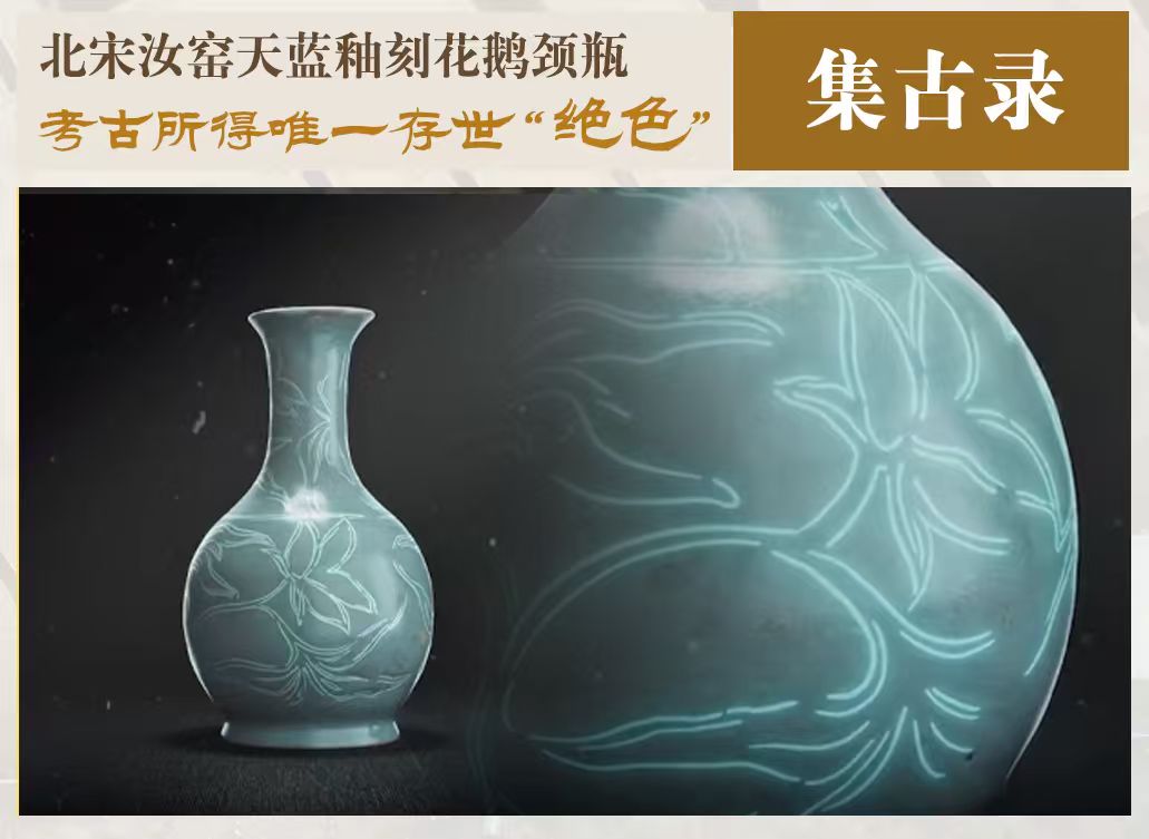 在最“文艺”的朝代北宋,还有汝窑声名大噪。一件天蓝釉刻花鹅颈瓶,1987年出土于河南宝丰清凉寺的汝官窑遗址。考古发掘所得,并饰有刻花工艺的天蓝釉汝瓷,仅此一件,堪称稀世珍宝。《集古录》管窥河南博物院镇院之宝,再叹汝窑之美。