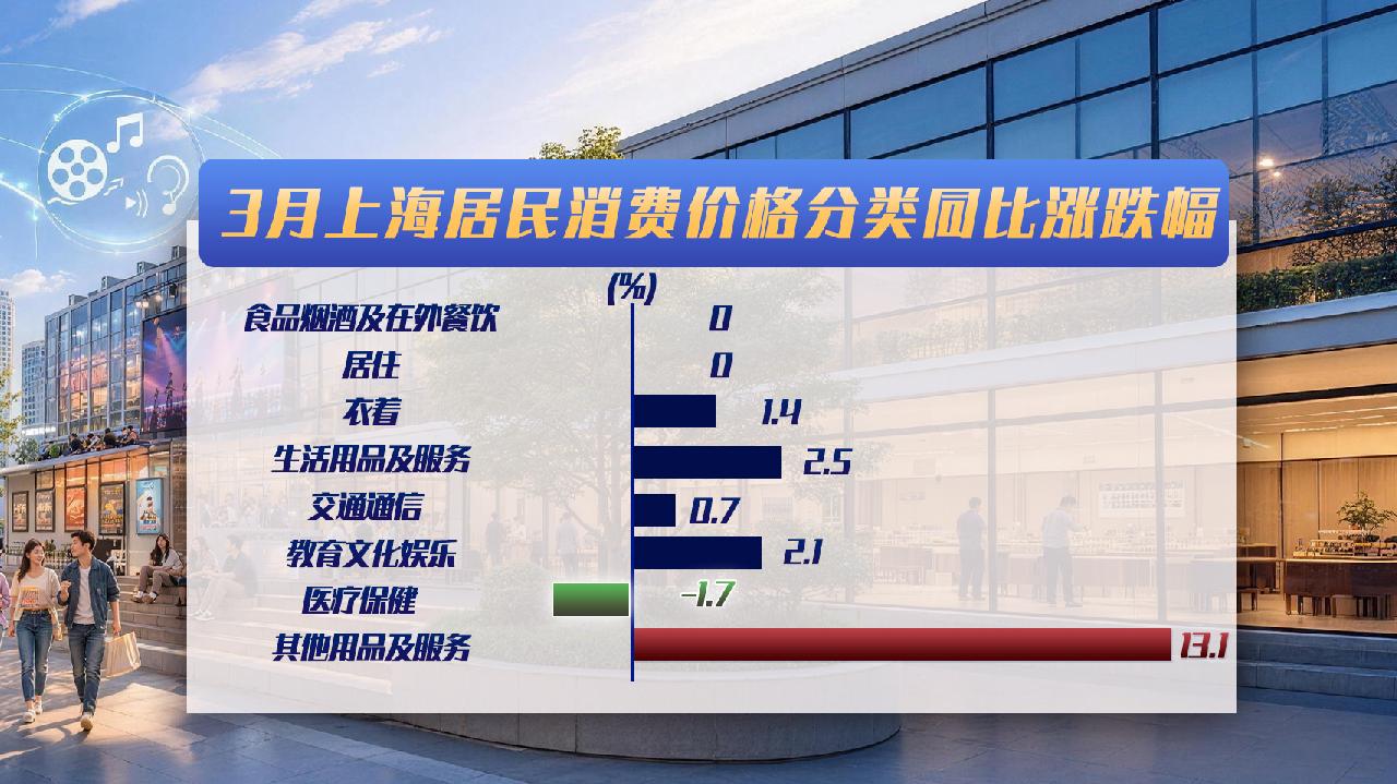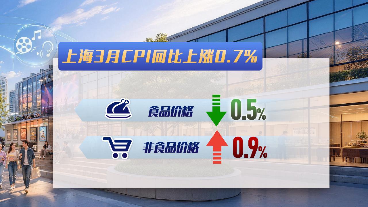 3月上海居民消费价格同比上涨0.7%。涨幅比全国低0.3个百分点,继续呈现温和上涨的态势。