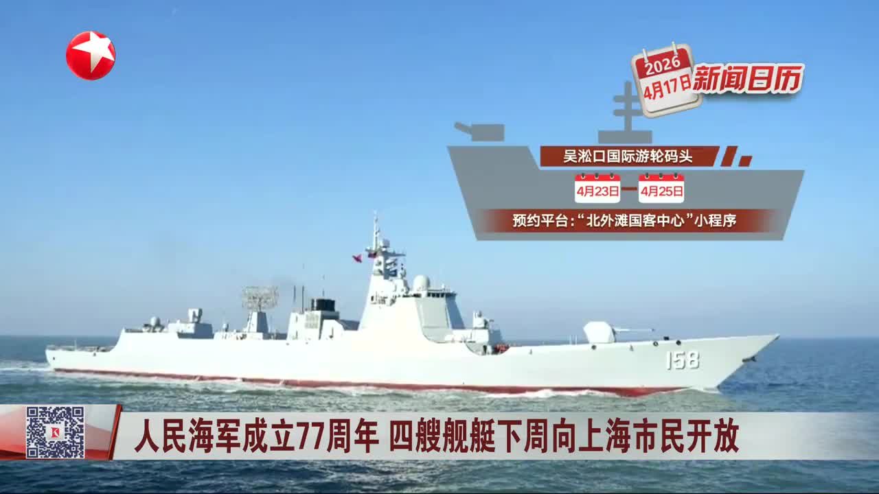 新闻日历 人民海军成立77周年 四艘舰艇下周向上海市民开放