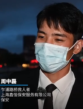 周中磊表示,事发时听到身边保安的对讲机中传来“有人落水”的消息,当时没想太多,立即翻过围栏,跑向桥边直接跳下去了。“没其他,就想快救人”