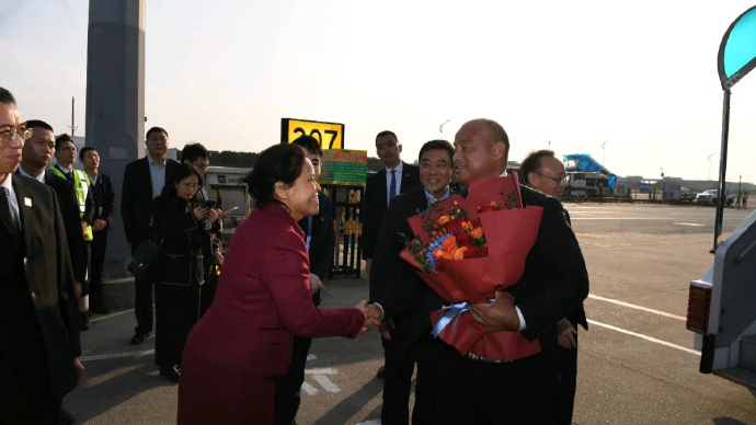 中国驻瑙鲁大使馆8日消息,2月8日,瑙鲁总统阿迪昂率代表团抵达广州,正式开启在粤访亲过年行程。中国驻瑙鲁大使吕进、广东省人民政府外事办公室主任马文峰、瑙鲁驻华大使齐特拉·杰里迈亚等到机场迎接。这是阿迪昂总统自上次赴粤寻根谒祖以来,时隔7个月再次到访广东。此访期间,阿迪昂总统将回祖籍地广东江门市与族亲共度小年并访问广州和佛山,会见有关省市领导并参访当地企业,探讨进一步深化粤瑙两地务实合作。