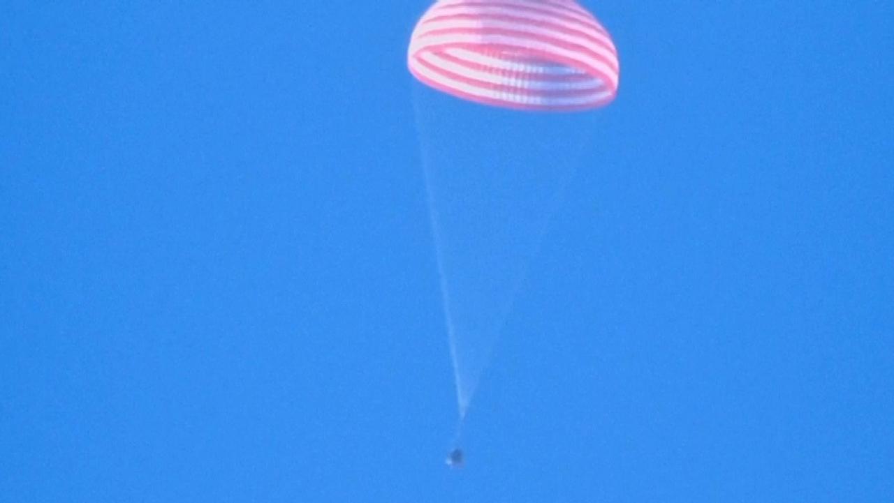 14时49分,北京航天飞行控制中心通过地面测控站发出返回指令,神舟二十一号载人飞船轨道舱与返回舱成功分离。之后,飞船返回制动发动机点火,返回舱与推进舱分离,返回舱成功着陆,搜救分队及时发现目标并抵达着陆现场。返回舱舱门打开后,医监医保人员现场确认神舟二十号乘组航天员陈冬、陈中瑞、王杰身体状态良好。