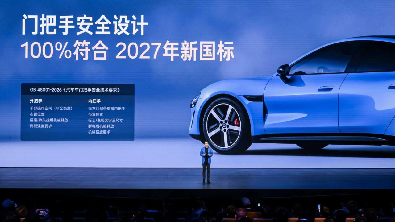 在小米春季新品发布会上,雷军宣布,新一代小米SU7起售价21.99万元,新一代小米SU7 Pro版起售价24.99万元。新一代SU7采用车外机械拉手:碰撞后自动解锁,可从车外应急开门。据悉,新一代SU7门把手安全设计100%符合2027年新国标。