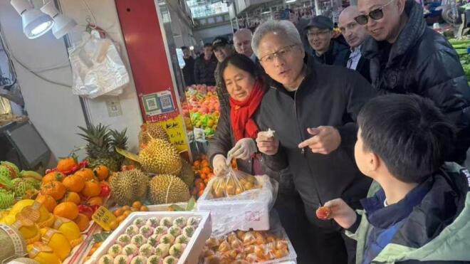 黄仁勋现身上海菜市场 买了一袋耙耙柑还送红包