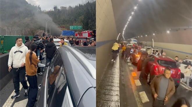 春节返程途中遇险情!京昆高速一隧道内车辆自燃